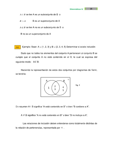 E12 Ejemplo: Sean: A = {1, 2, 3} y B = {2, 3, 4, 5} Determinar si existe inclusión